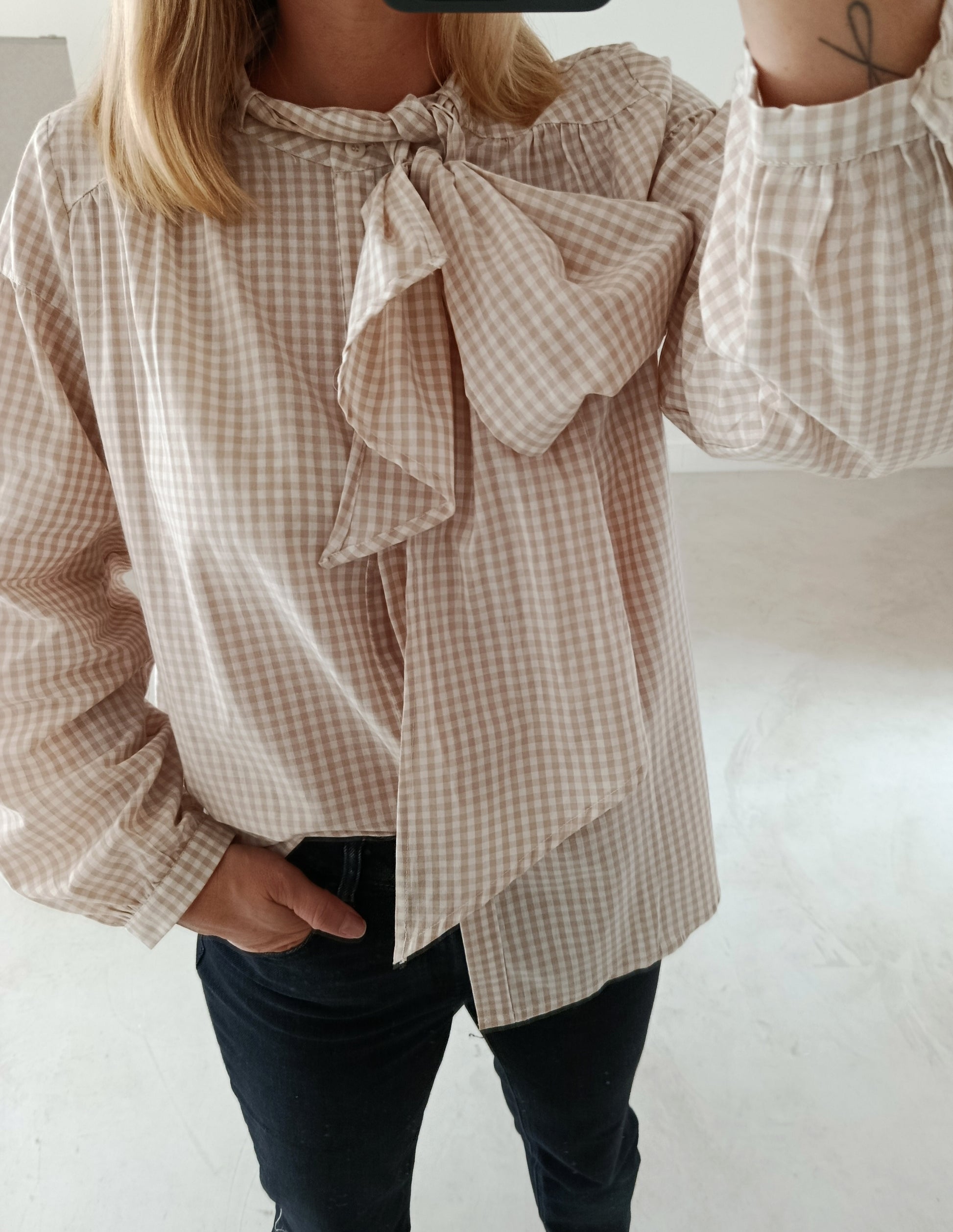 Un intemporel pour toutes les saisons, cette délicate blouse vichy beige.