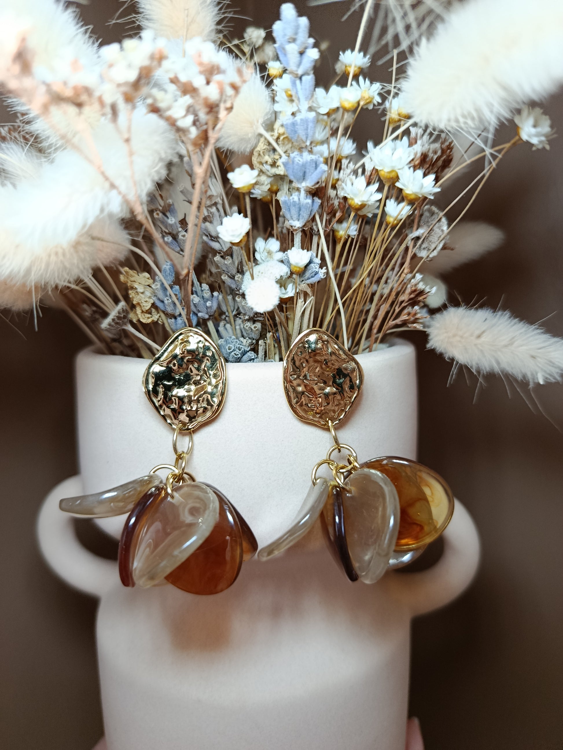 - BO avec une partie fixe effet martelé et une partie pendante, de pétales en résine