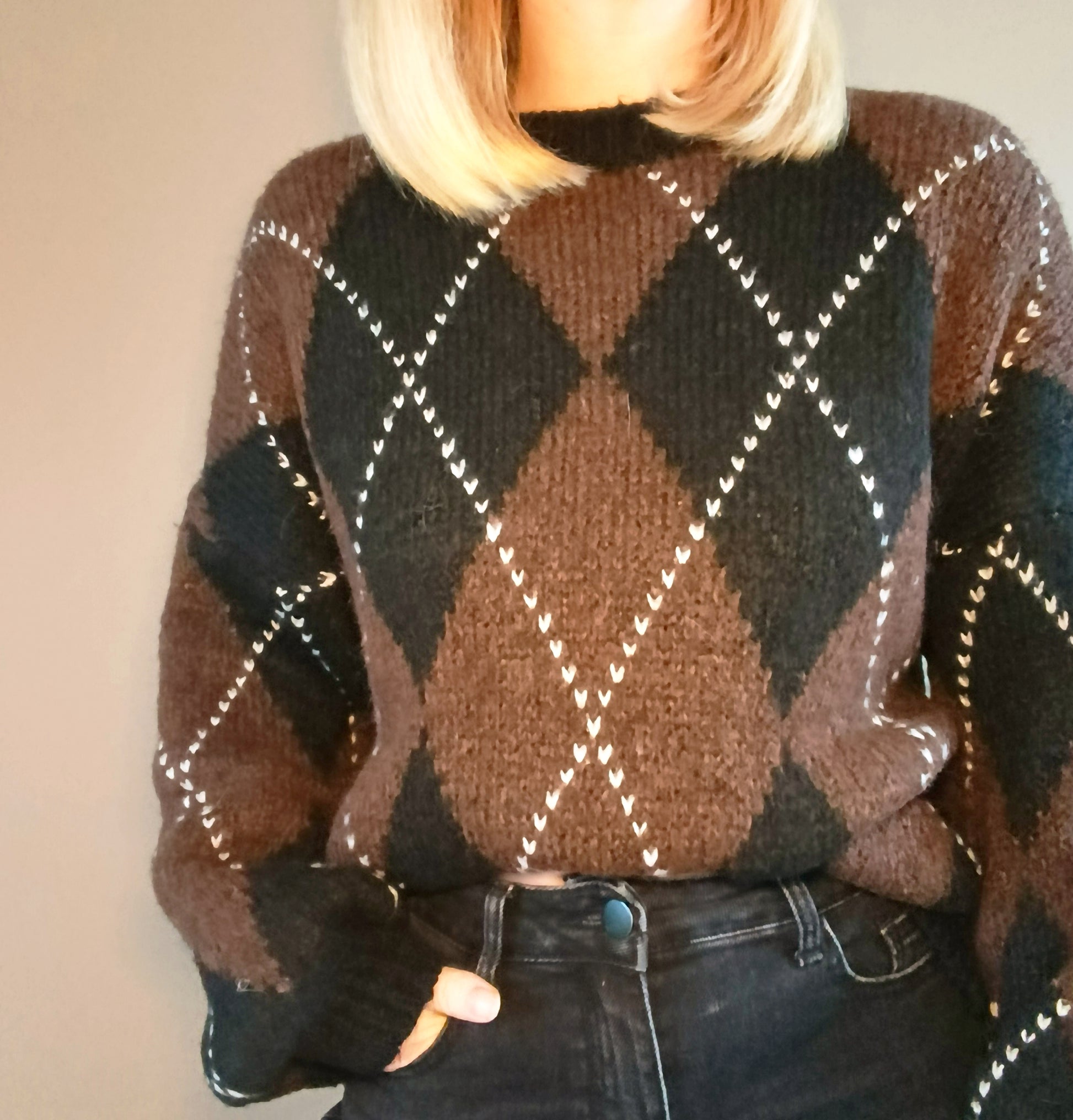 Mon coup de cœur de la collection ! Il est juste parfait avec ses motifs géométriques et ses couleurs hyper tendance entre le noir et le chocolat.